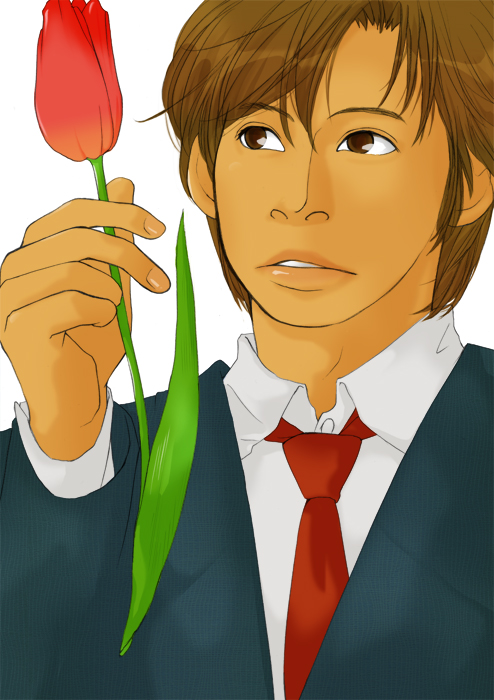 「女の子に花選ぶのなんて久しぶりだな〜v あ、室井さん、彼女オレンジ色が好きなんですって。…これってオレンジ色?すかね?…ピンクか?」