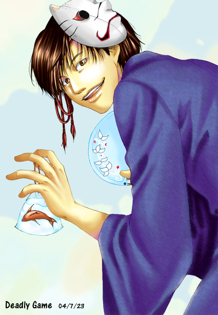 宗助様の素敵イラストです。フリーイラストだったので、頂いちゃいました! 暑いのなんか忘れそうな、爽やか青島君v視線の先にはきっと室井さんがいるのでしょうね〜。 そして、更に暑く(熱く?)なっちゃう室井さん(笑) 浴衣は着せたくもなりますが、脱がしたくもなりますよねー!美味しいなぁぁ、もうっ(ナニ)
