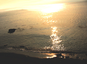 波もなく穏やかな海に日が沈んでいく様を、黙って眺める。